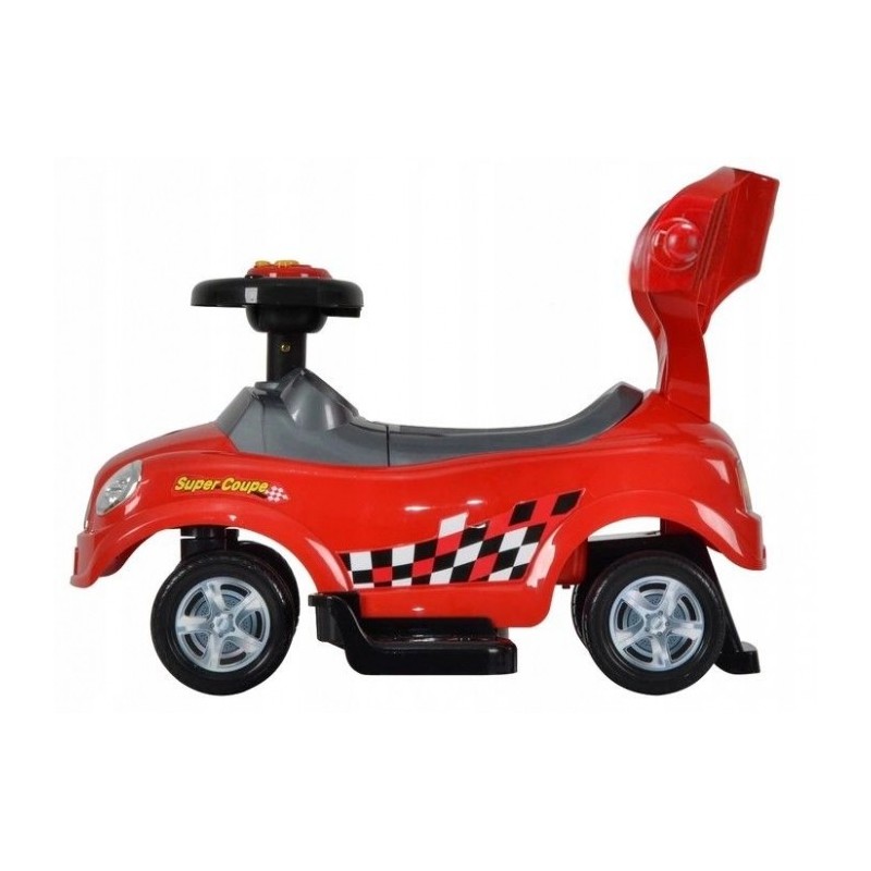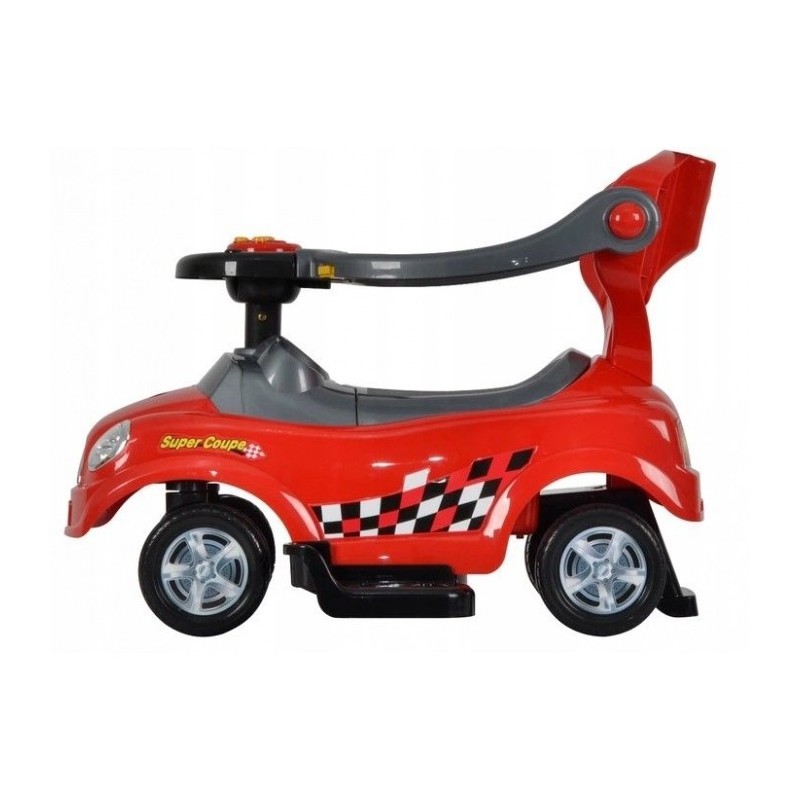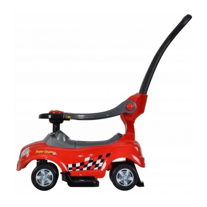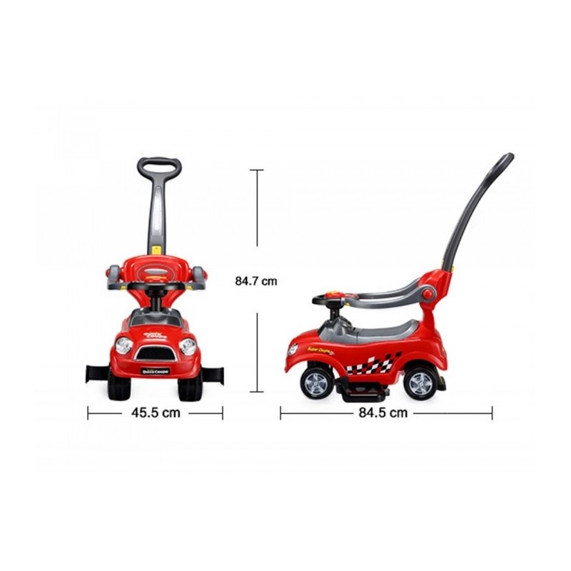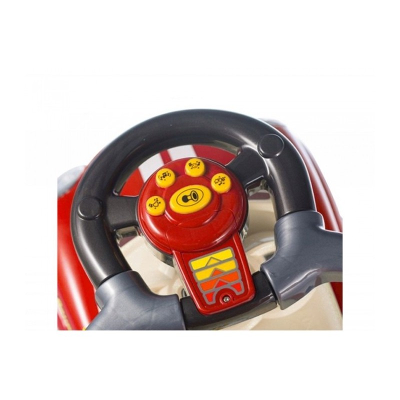 Masinuta de impins este realizata dintr-un material rezistent la orice impact. Masina poate fi modificata la alegere, astfel incat sa poata fi ajustata la varsta copilului. Barierele de protectie, suportul pentru picioare, spatarul si manerul pot fi detasate de masinuta atunci cand copilul este pregatit pentru asta. Rotile pivotante din fata sunt controlate de catre copil cu ajutorul volanului, care are si un panou de muzica incorporat si sunet de claxon.