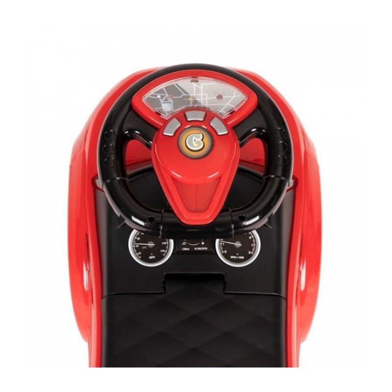 Masinuta dezvolta abilitatile motorii, perceptia si chiar elementele de baza ale miscarii. Datorita volanului sau multimedia, masina atrage atentia celor mici si face din masinuta de impins jucaria preferata. Exista 3 butoane pe volan care sunt responsabile pentru redarea sunetelor. Masinuta are 3 melodii preprogramate si un sunet de claxon. Datorita acestei caracteristici, distractia va deveni si mai captivanta.