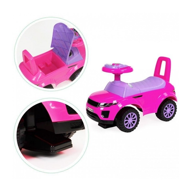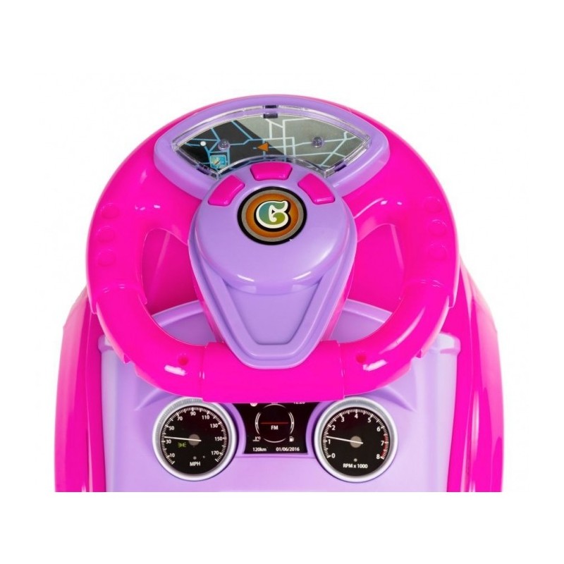 Masinuta dezvolta abilitatile motorii, perceptia si chiar elementele de baza ale miscarii. Datorita volanului sau multimedia, masina atrage atentia celor mici si face din masinuta de impins jucaria preferata. Exista 3 butoane pe volan care sunt responsabile pentru redarea sunetelor. Masinuta are 3 melodii preprogramate si un sunet de claxon. Datorita acestei caracteristici, distractia va deveni si mai captivanta.