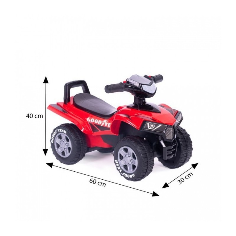 Masinuta de impins GOODYEAR este o jucarie ideala pentru copiii peste 18 luni, asigurand distractia in siguranta. Este echipata cu un volan interactiv cu sunete de tip claxon si pornire a motorului. Designul include, de asemenea, un compartiment de depozitare spatios sub scaun si un picior special anti-rasturnare. Sarcina maxima a vehiculului este de 25 kg.