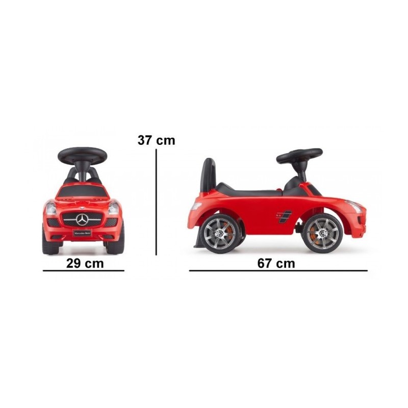 Masinuta Mercedes Benz SLS AMG este fabricata sub licenta Mercedes. Beneficiaza de caracteristicile similare unei masini reale. Prezinta jante originale Mercedes + insigna Mercedes in partea din fata si din spate a vehiculului.