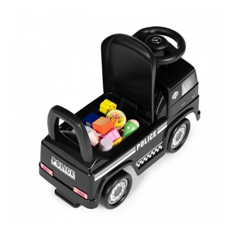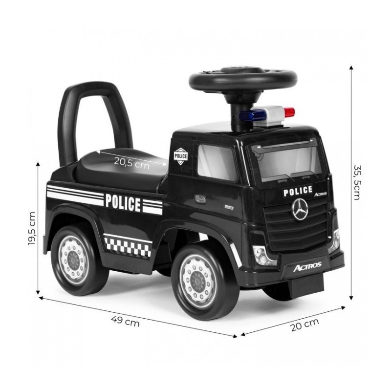 Modelul Actros este certificat Mercedes si este echipat cu un spatar care serveste drept maner de impingere, un compartiment de depozitare spatios sub scaun si un element anti-rasturnare.