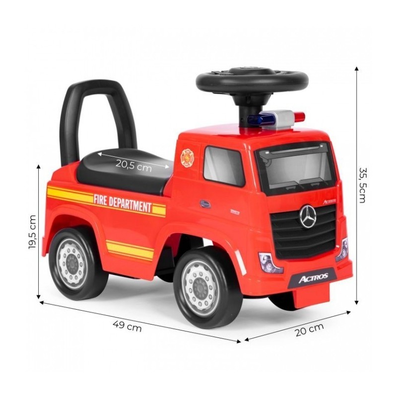 Modelul Actros este certificat Mercedes si este echipat cu un spatar care serveste drept maner de impingere, un compartiment de depozitare spatios sub scaun si un element anti-rasturnare.