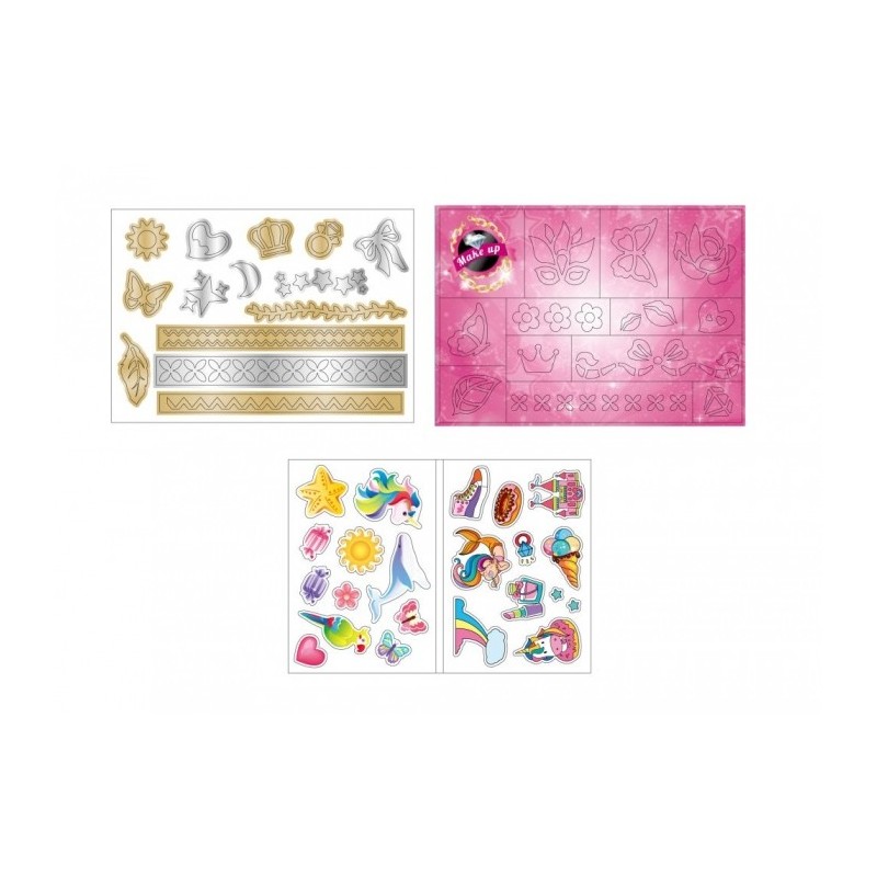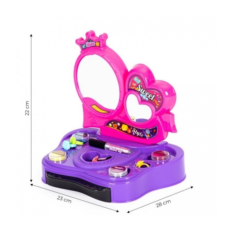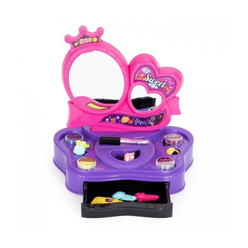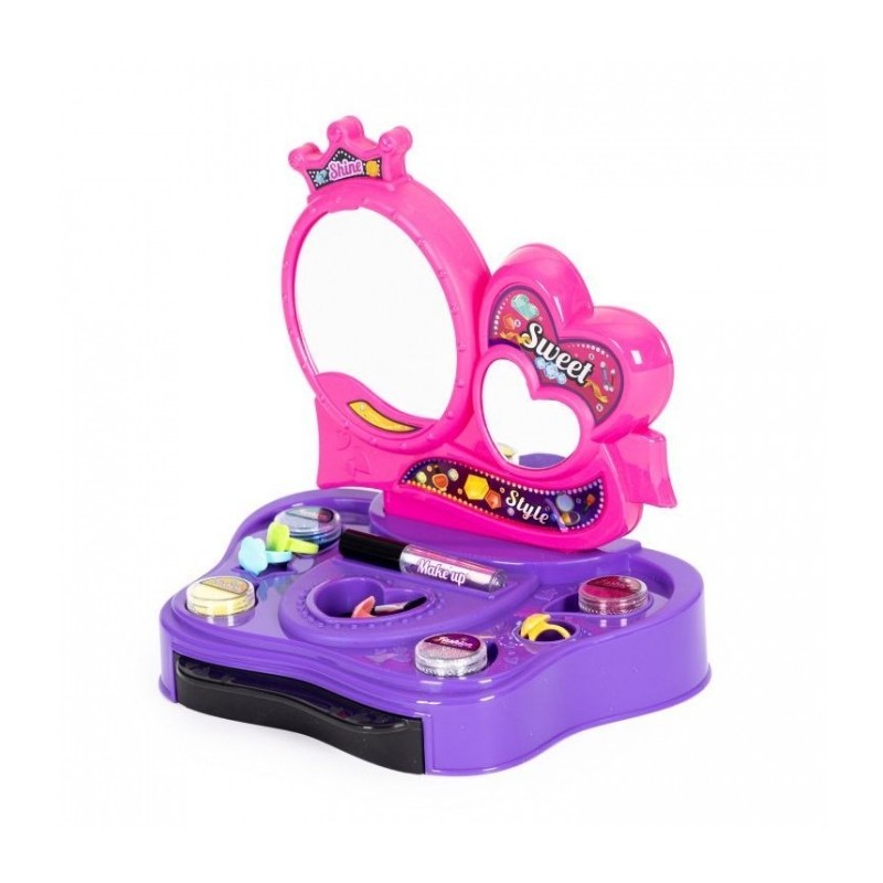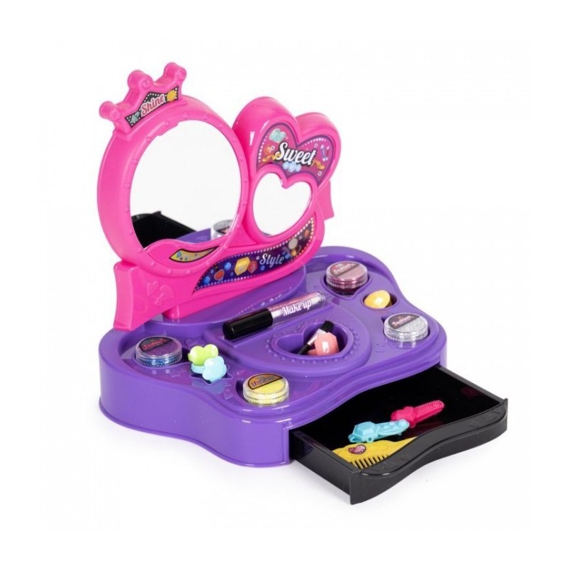 O jucarie care serveste drept masuta de toaleta dezvolta imaginatia si abilitatile manuale. Sunt incluse inele, agrafe de par, pieptene, sclipici si sabloane pentru tatuaje. Pentru a face un tatuaj, lipiti sablonul pe partea selectata a corpului, utilizati un adeziv special (luciu), apoi stropiti lipiciul cu sclipici.