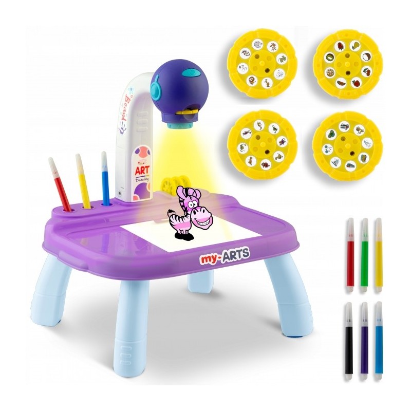 - proiectorul are suprapuneri cu pana la 32 de imagini (dinozauri, fructe, legume, animale etc.);