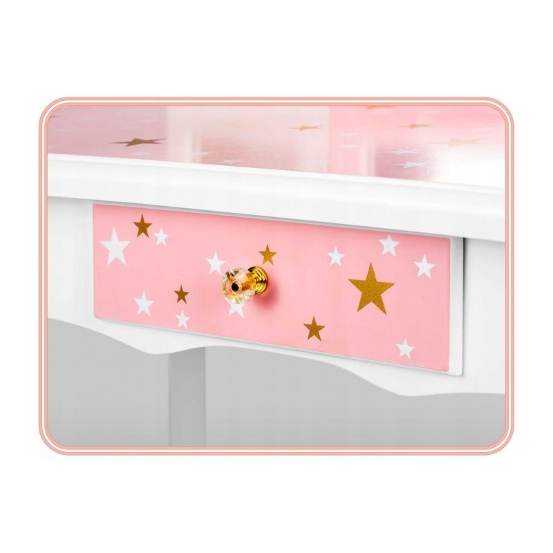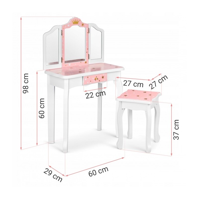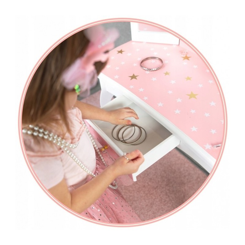 Designul, atentia la detalii si un finisaj frumos vor face din masa de toaleta o piesa de mobilier foarte functionala precum si un decor de incapere. Datorita masutei noastre de toaleta, fiecare fetita se poate simti ca o adevarata domnisoara.