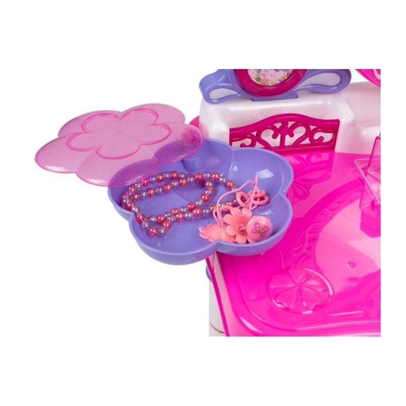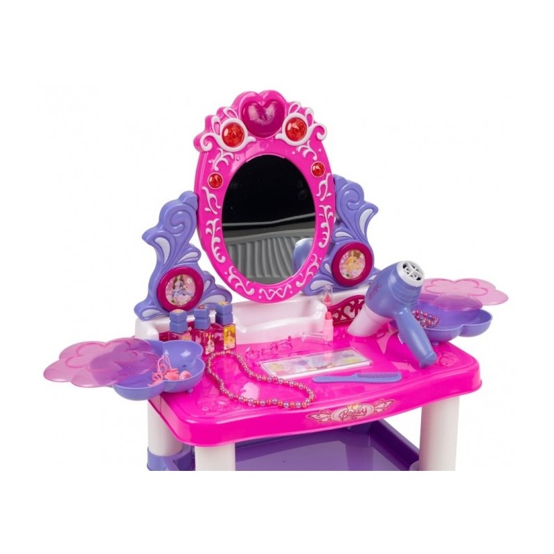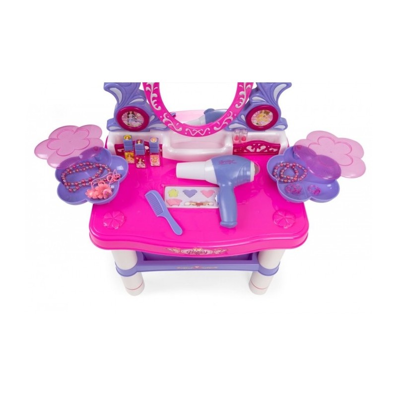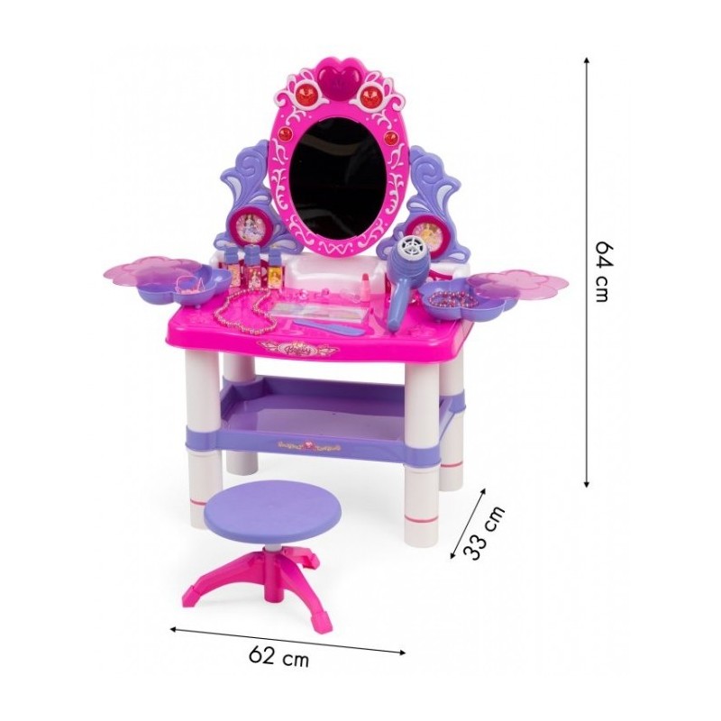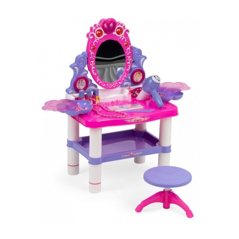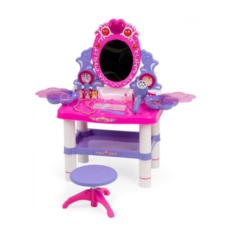 O masuta de toaleta cu accesorii este o solutie perfecta pentru camera copilului. Setul contine pana la 24 de accesorii care va vor ajuta copilul sa se joace. Este fabricata din plastic sigur si durabil, care asigura durabilitate si siguranta in timpul utilizarii.