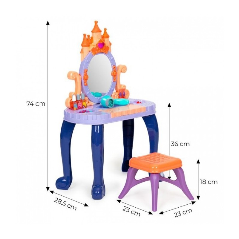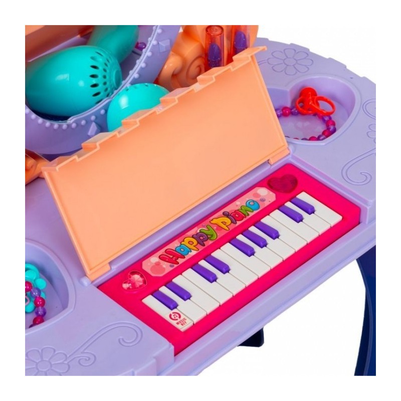 O masuta de toaleta pentru copii cu pian incorporat este o jucarie grozava si o piesa de mobilier perfecta pentru fiecare fata care viseaza la propriul ei colt destinat machiajului. Contine o multime de accesorii care cu siguranta vor multumi fiecare domnisoara.