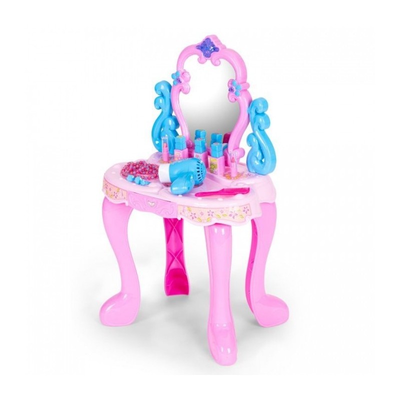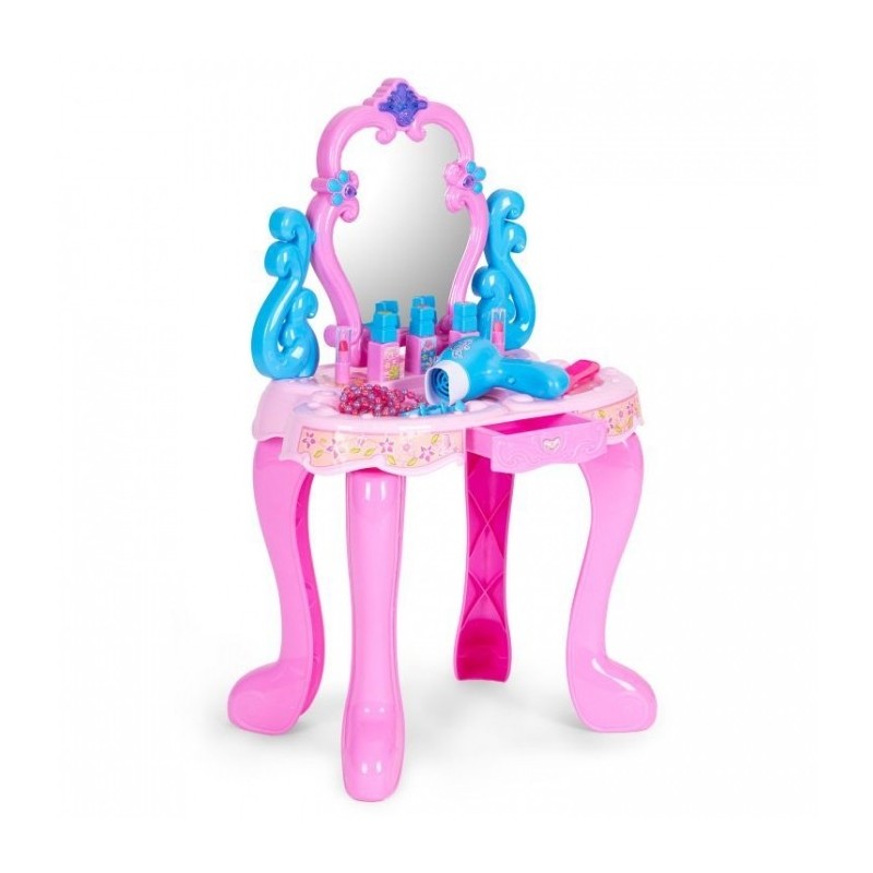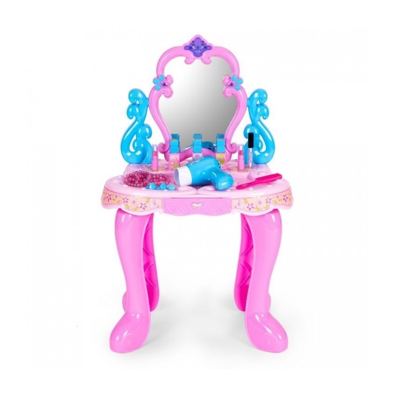 Masuta de toaleta are o oglinda cu cadru decorativ si lumini LED.