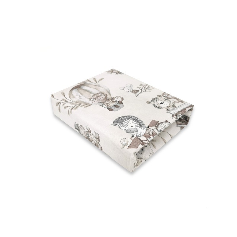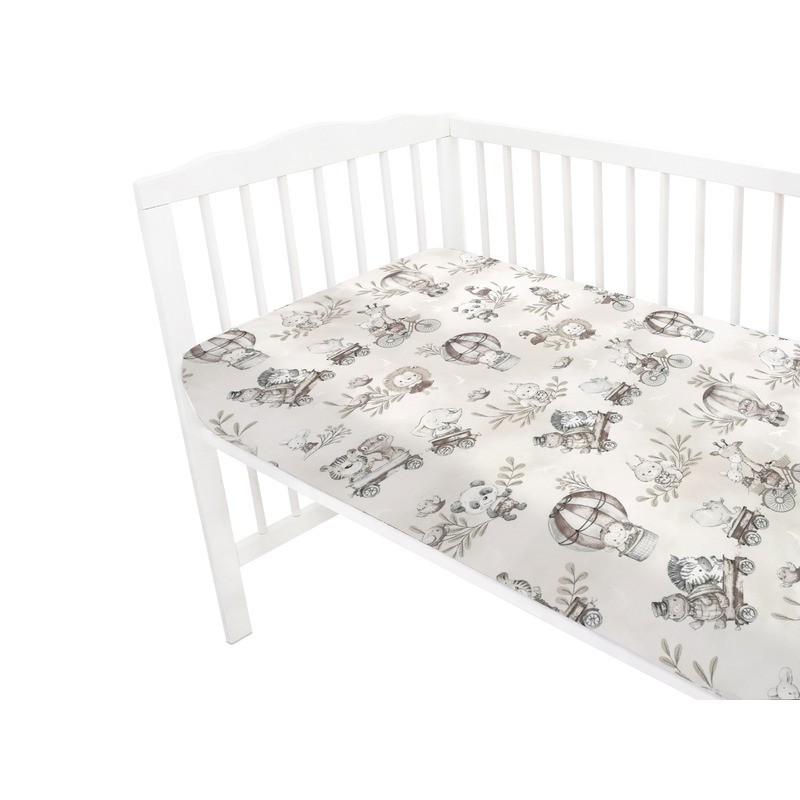 MimiNu - Cearceaf cu elastic pentru patut 120X60 cm Din bumbac certificat Oeko Tex Standard 100 Design Zoo on Bikes Beige