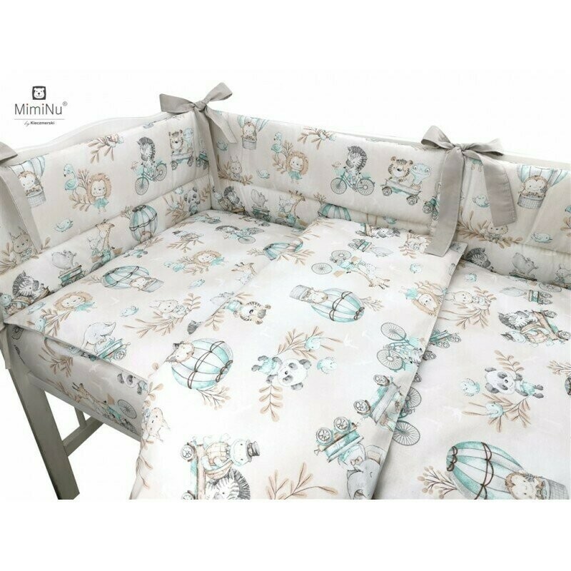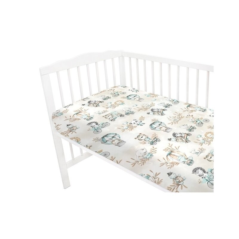 MimiNu - Cearceaf cu elastic pentru patut 120X60 cm Din bumbac certificat Oeko Tex Standard 100 Design Zoo on Bikes Nugat