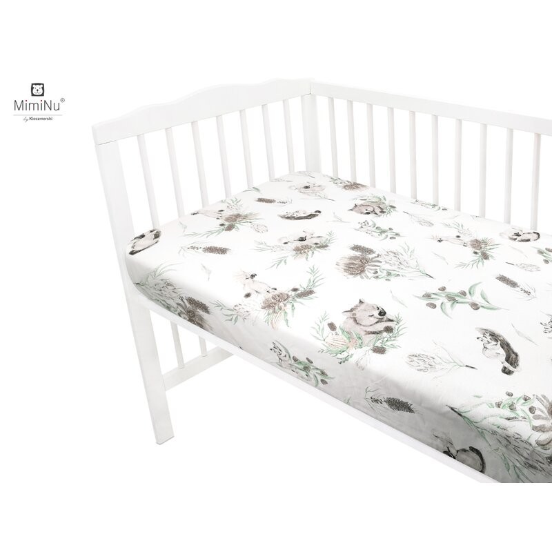 MimiNu - Cearceaf cu elastic pentru patut 140X70 cm Din bumbac certificat Oeko Tex Standard 100 Australian Animals Beige