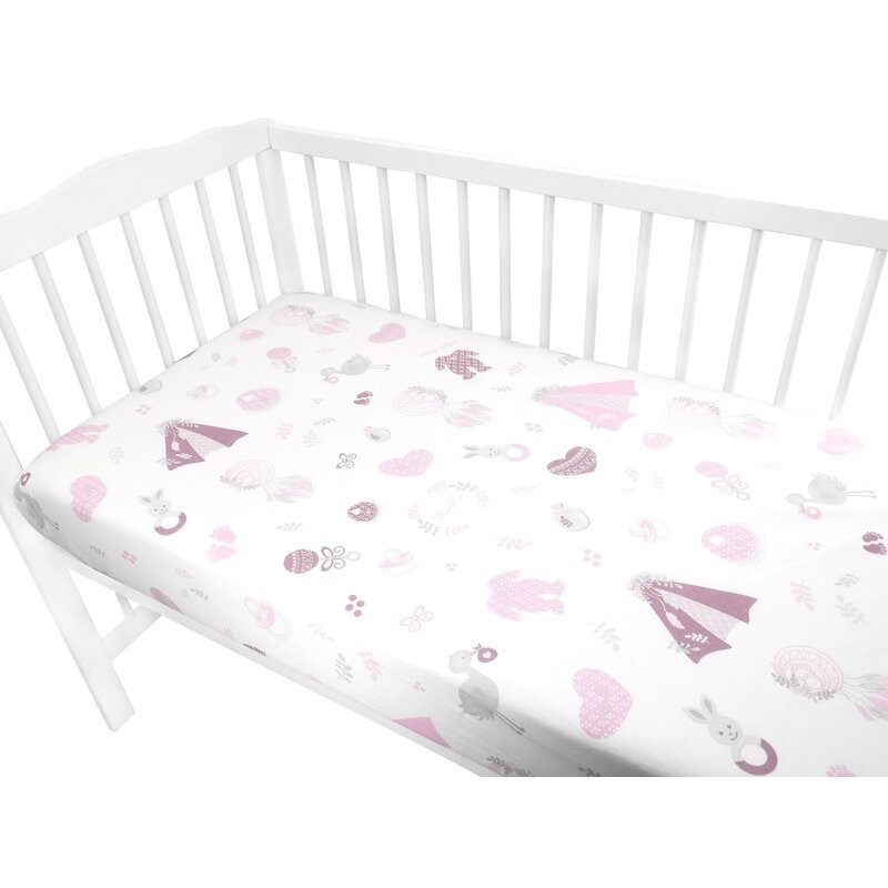 MimiNu - Cearceaf cu elastic pentru patut 140X70 cm Din bumbac certificat Oeko Tex Standard 100 Baby Shower Pink
