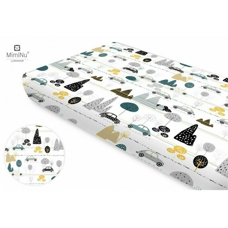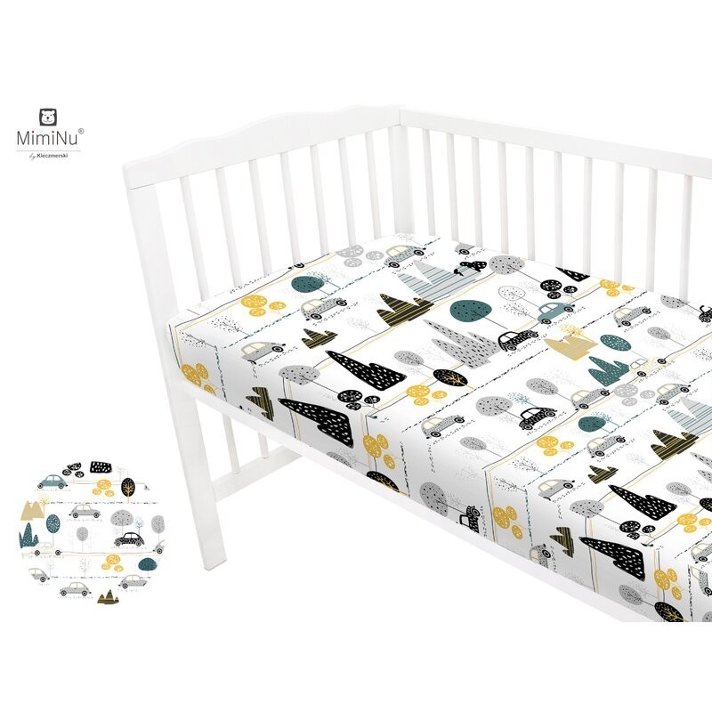 MimiNu - Cearceaf cu elastic pentru patut 140X70 cm Din bumbac certificat Oeko Tex Standard 100 Childrens Journey Grey