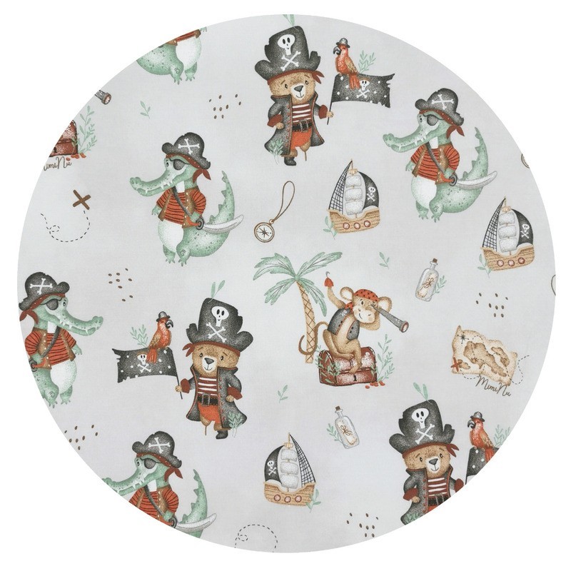 MimiNu - Cearceaf cu elastic pentru patut 140X70 cm Din bumbac certificat Oeko Tex Standard 100 Design Pirates Natural