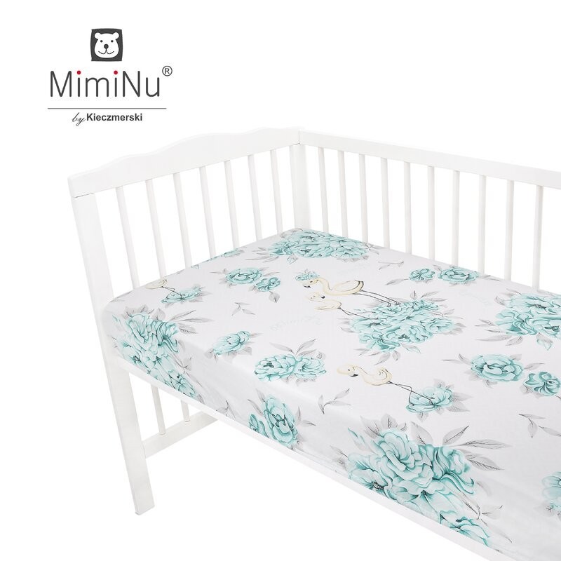 MimiNu - Cearceaf cu elastic pentru patut 140X70 cm Din bumbac certificat Oeko Tex Standard 100 Peonie Mint