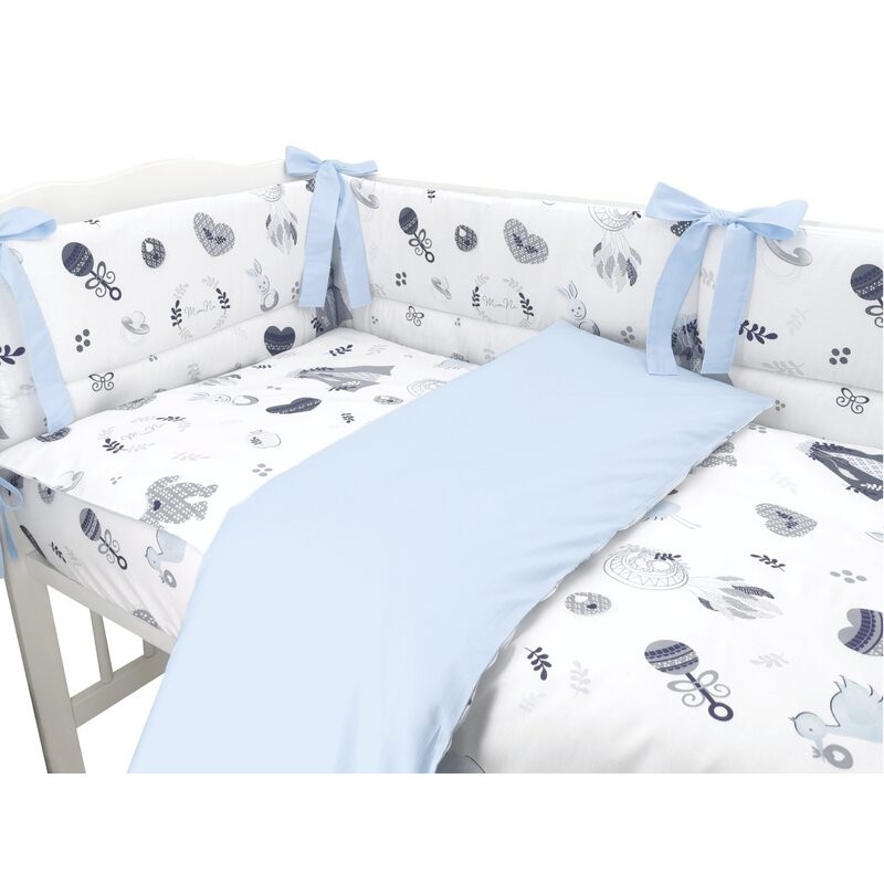 MimiNu - Lenjerie patut 3 piese Cu protectie laterala Din bumbac certificat Oeko Tex Standard 100 Pentru patut 120x60 cm Baby Sh