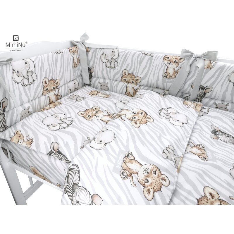 MimiNu - Lenjerie patut 3 piese Cu protectie laterala Din bumbac certificat Oeko Tex Standard 100 Pentru patut 120x60 cm Safari