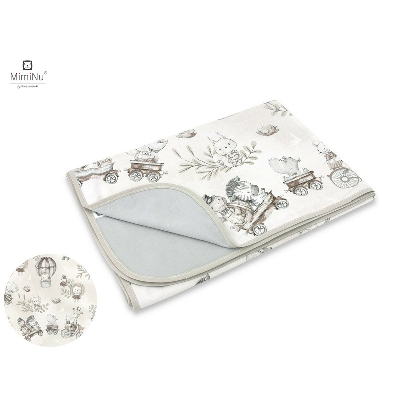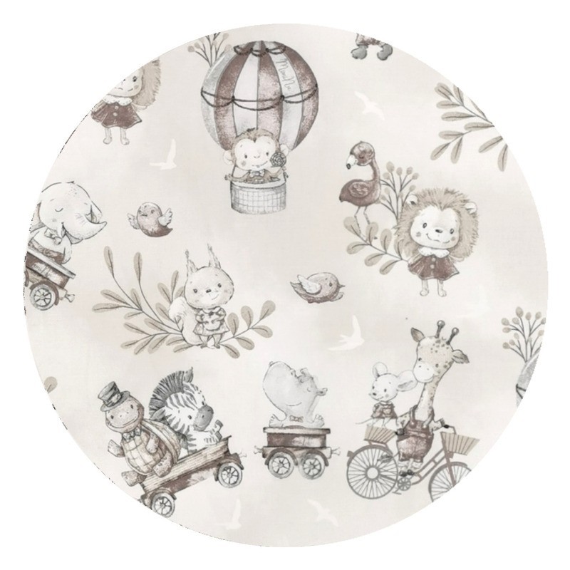 MimiNu - Paturica moale cu doua fete Dimensiune 75x100 cm Din bumbac certificat Oeko Tex Standard 100 Design Zoo on Bikes Beige