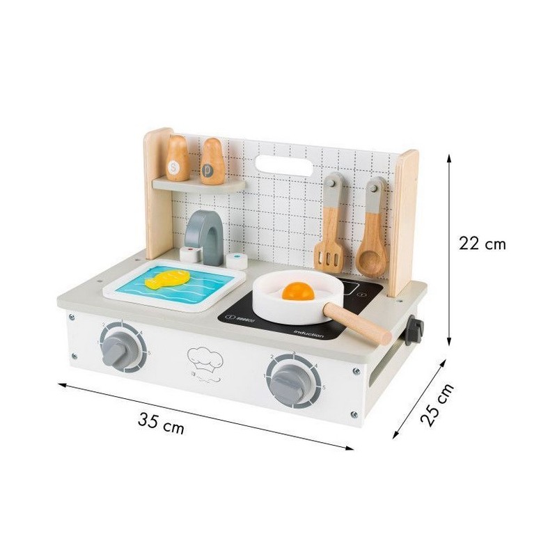 Mini bucataria reflecta perfect caracterul unei adevarate bucatarii. Detaliile bine alese fac ca copilul sa se joace cu ea ore intregi. Butoanele emit un sunet de "click" dinstinct, care adauga realism experietei de gatit.