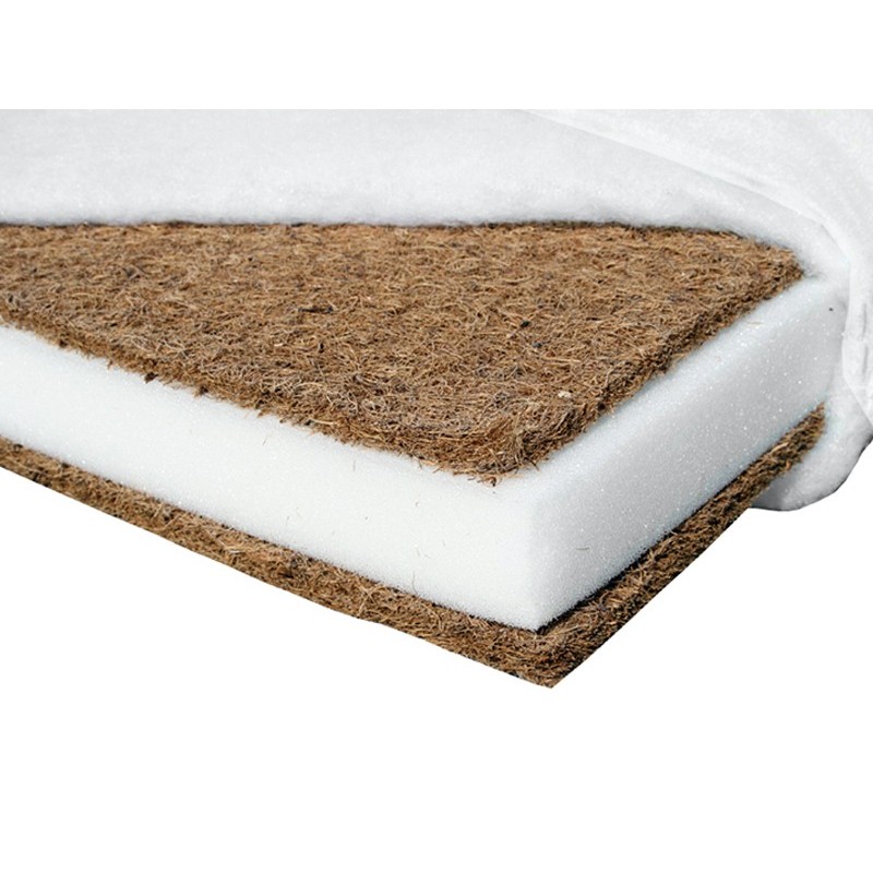 - aceasta saltea este confectionata din 2 straturi de fibra nuca de cocos si un strat de burete la mijloc