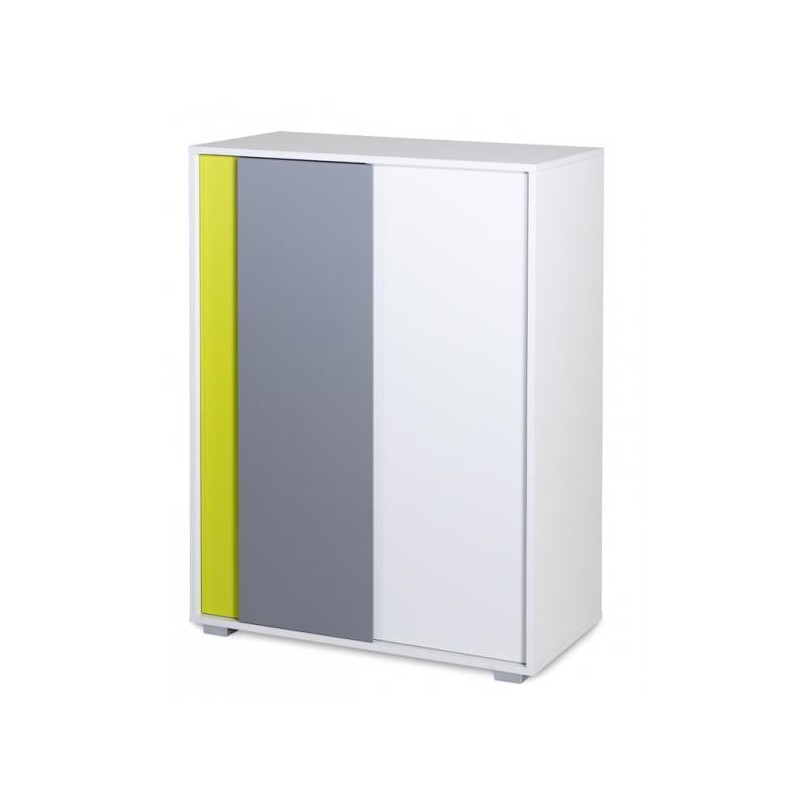 Comoda care captiveaza cu o linie originala de forme si o combinatie sofisticata de culori. ate de insertiile de var de pe fronturi. Datorita sistemului de deschidere fara maner folosit, mobilierul incanta cu modernitatea si prospetimea corpurilor proiectate.