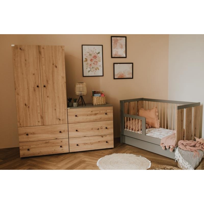 - Patut PAULINE Grafit-Stejar cu bariera de protectie 120(L) x 60(l) x 85(h) cm – Pret: 760 Ron