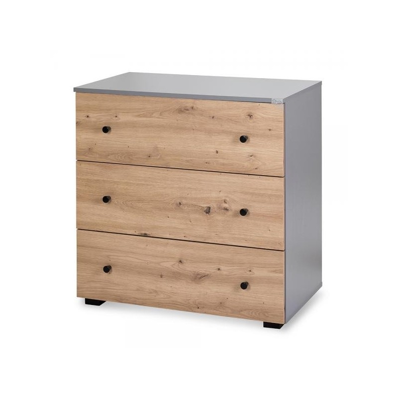 Aceasta comoda copii este spatioasa si confectionata din materiale de calitate. Vopselele utilizate sunt pe baza de apa. Comoda PAULINE Grafit-Stejar este prevazuta cu 3 sertare unde se pot depozita cu usurinta hainutele si accesoriile copilului.