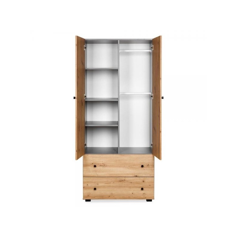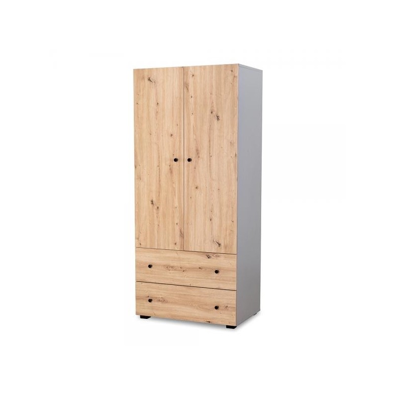 Dulap cu 2 usi si sertare PAULINE Grafit-Stejar 80(L) x 55(l) x 183(h) cm