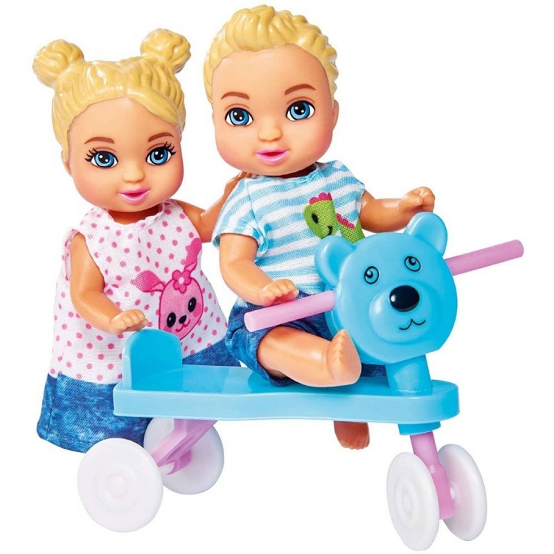 - Setul include urmatoarele elemente: papusa Steffi Love, 2 copii, un bebelus, scaun de masa, carucior, patut, scoica, tricicleta, si diverse accesorii pentru bebelusi