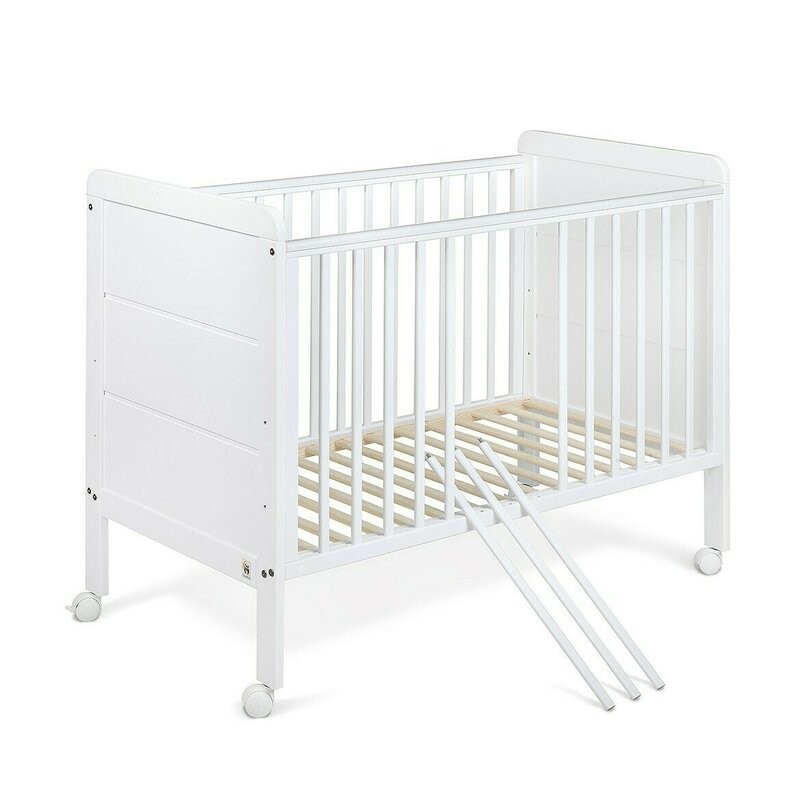 Una dintre lateralele patutului este prevazuta cu 3 bete detasabile, astfel incat copilul, de indata ce a crescut, sa poata intra si iesi mai usor din patut.