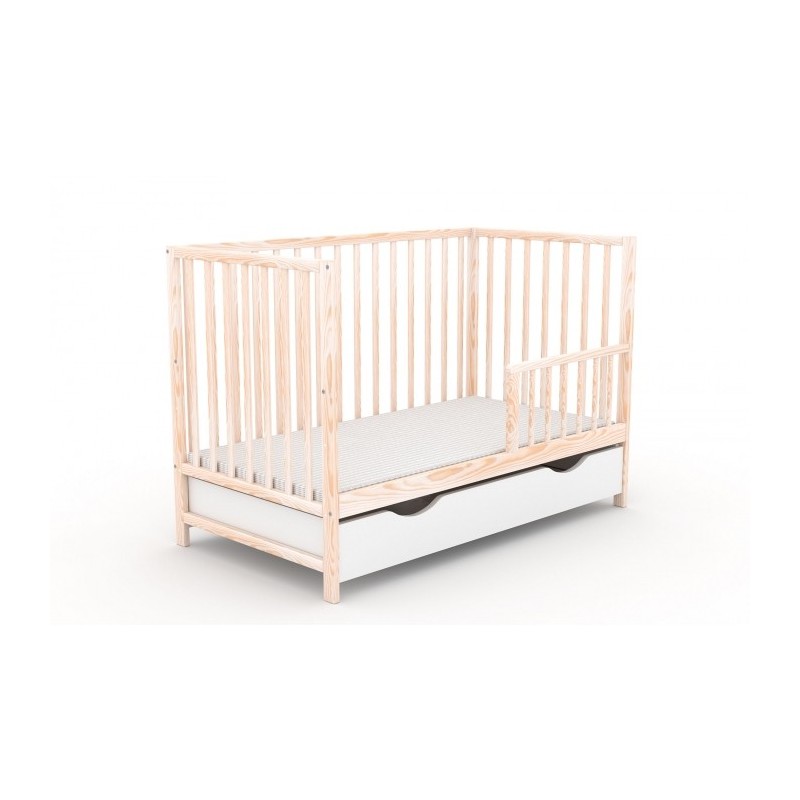 - Patutul poate fi folosit o perioada mai indelungata de timp datorita protectiei laterale din lemn inclusa care transforma patutul intr-o canapea. Aceasta va fi folosita atunci cand copilul stie sa paraseasca patutul fara probleme. Laterala principala a patutului va fi inlocuita cu protectia laterala suplimentara inclusa in set;
