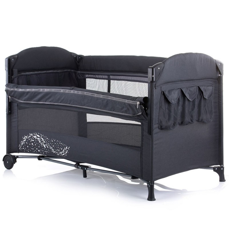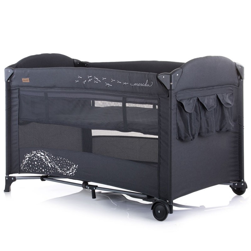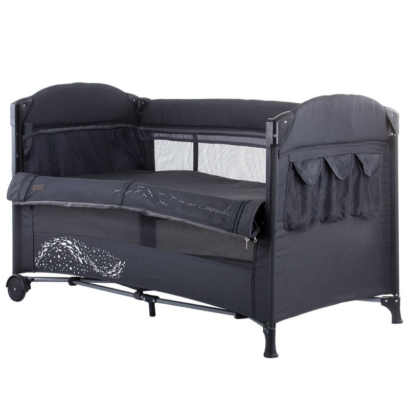 Patut pliabil Chipolino Merida asphalt linen cu laterala culisanta