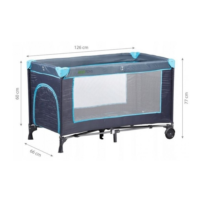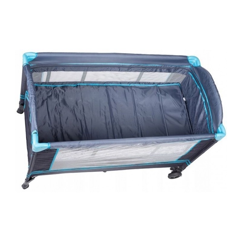 Patutul poate fi folosit si ca tarc de joaca, deoarece are o intrare laterala detasabila. Peretii patului sunt din plasa, care protejeaza copilasul impotriva insectelor. Intregul patut poate fi mutat datorita rotilor incorporate cu frane.