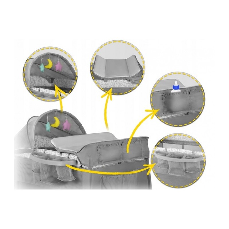 Un patut pliabil va fi util in timpul calatoriilor, precum si utilizarea de zi cu zi. Detaliile rafinate, fara margini ascutite, fac copilul sa se simta in siguranta.