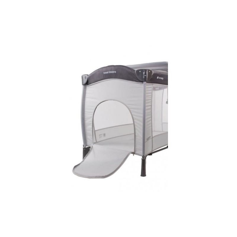 Rotile de blocare va permit sa mutati cu usurinta patutul intre camere. O husa pentru un patut va fi utila atunci cand mergi in vacanta sau in weekend la bunici. Intrarea laterala inchisa cu fermoar va permite copiilor mai mari sa intre in siguranta in patut, care poate fi folosit ca un parc de joaca. O plasa de tantari este obligatorie pentru vara!