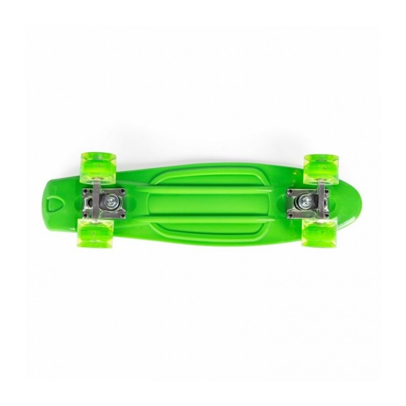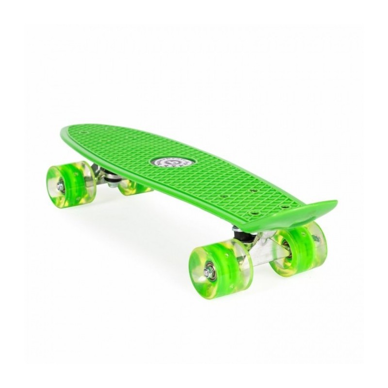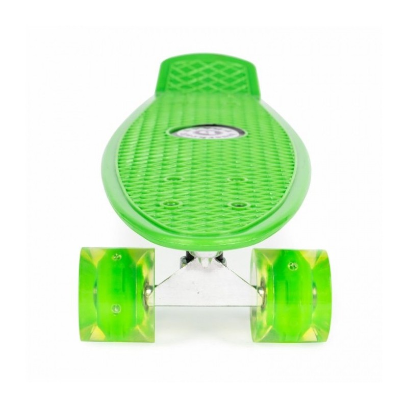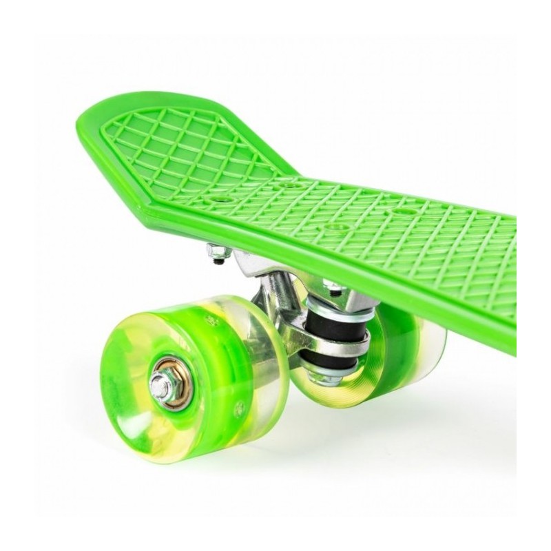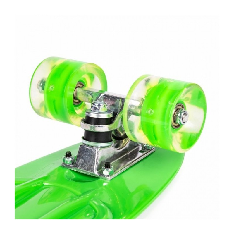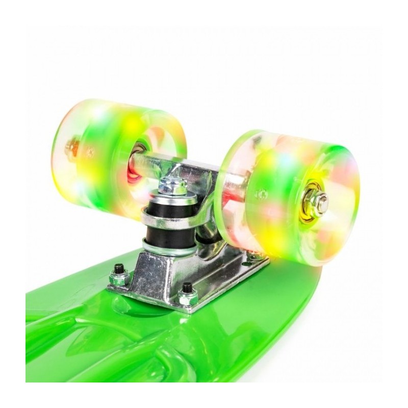 Pennyboard-ul este echipat cu roti cu LED colorate, din cauciuc, facandu-le ideale pentru deplasarea pe trotuarele urbane. Materialul si structura lor garanteaza o buna aderenta la sol, durabilitate si confort in conducere.