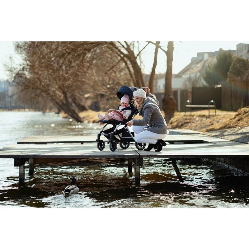Datorita rotilor mari si constructiei cu suspensii, este un carucior perfect pentru oras, precum si plimbarile in natura.