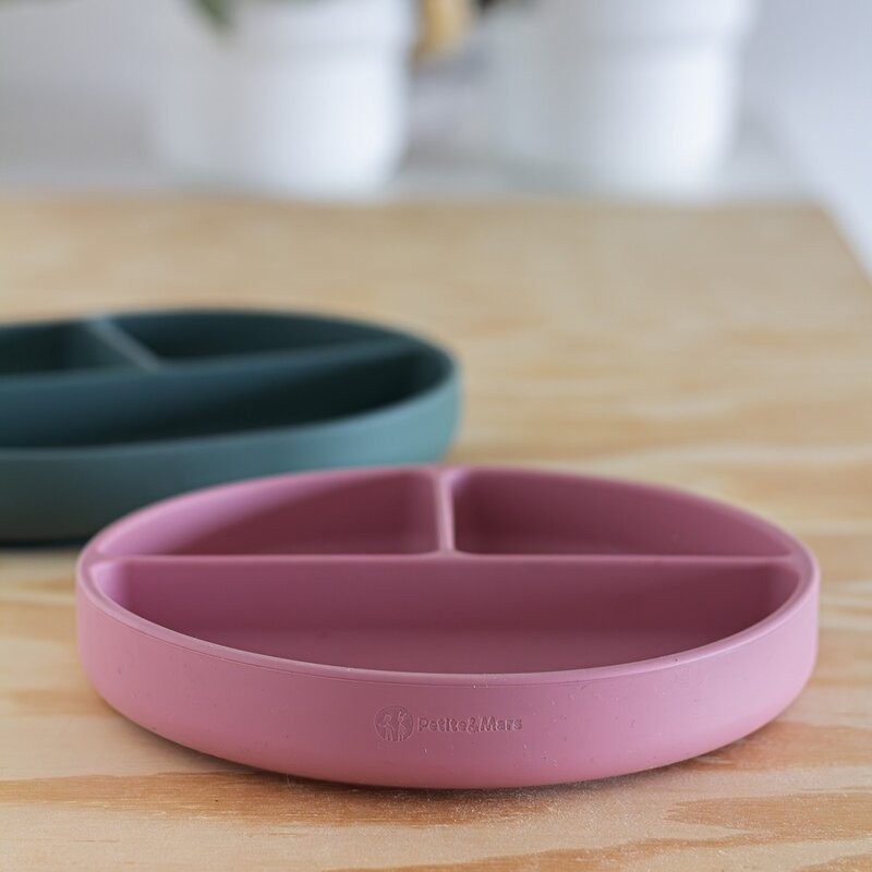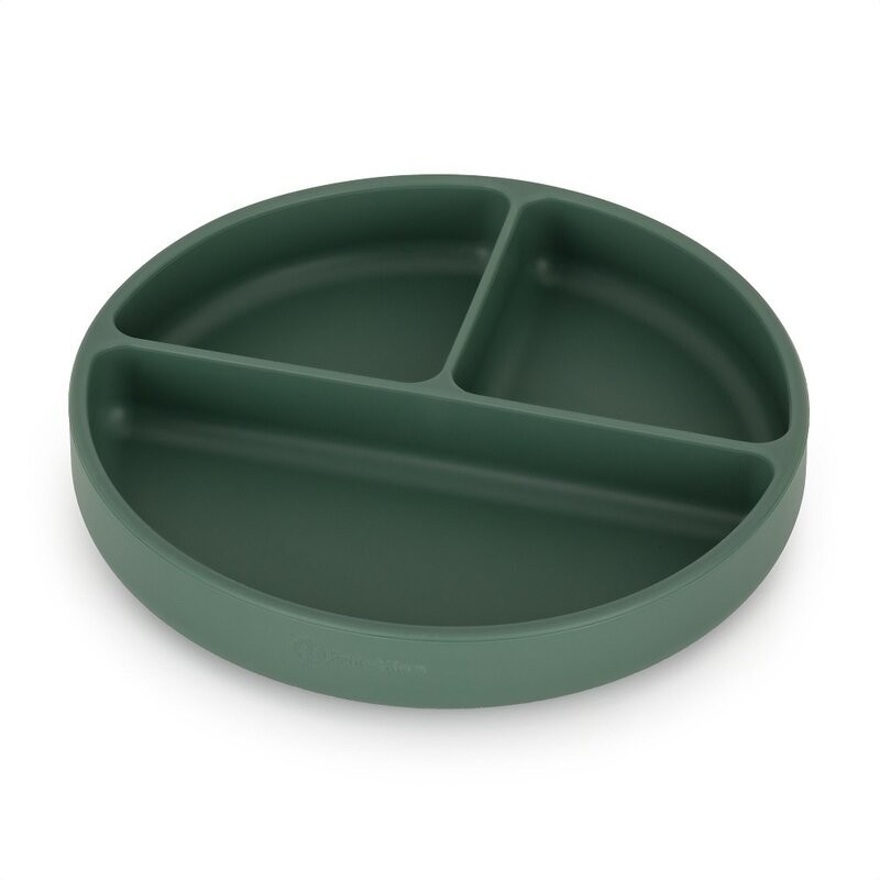 Farfuria rotunda compartimentata din silicon alimentar, fara BPA este practic si vine in ajutorul parintilor pentru a face celui mic un timp mai frumos petrecut la masa.
