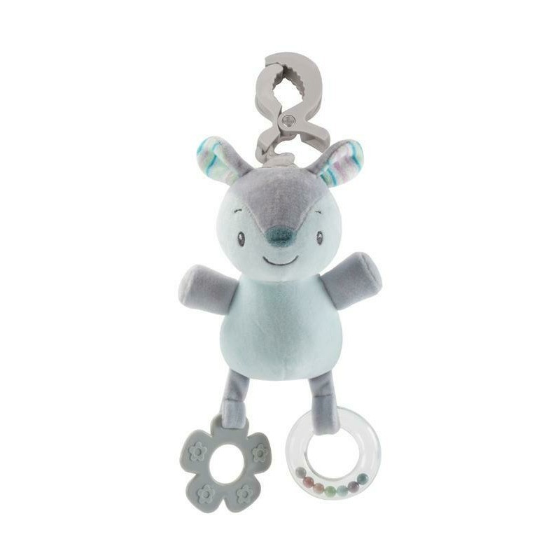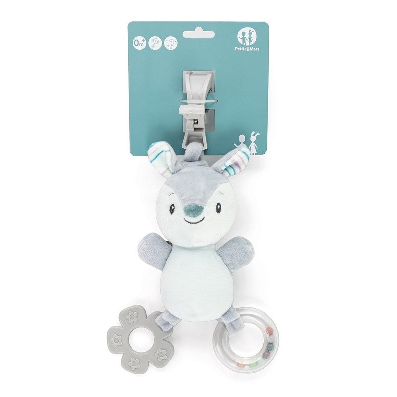 Petite&Mars - Jucarie zornaitoare din plus Boby Cu sunet Cu inel pentru dentitie si margelute Cu agatatoare 30 x 14 x 7 cm 0 lun