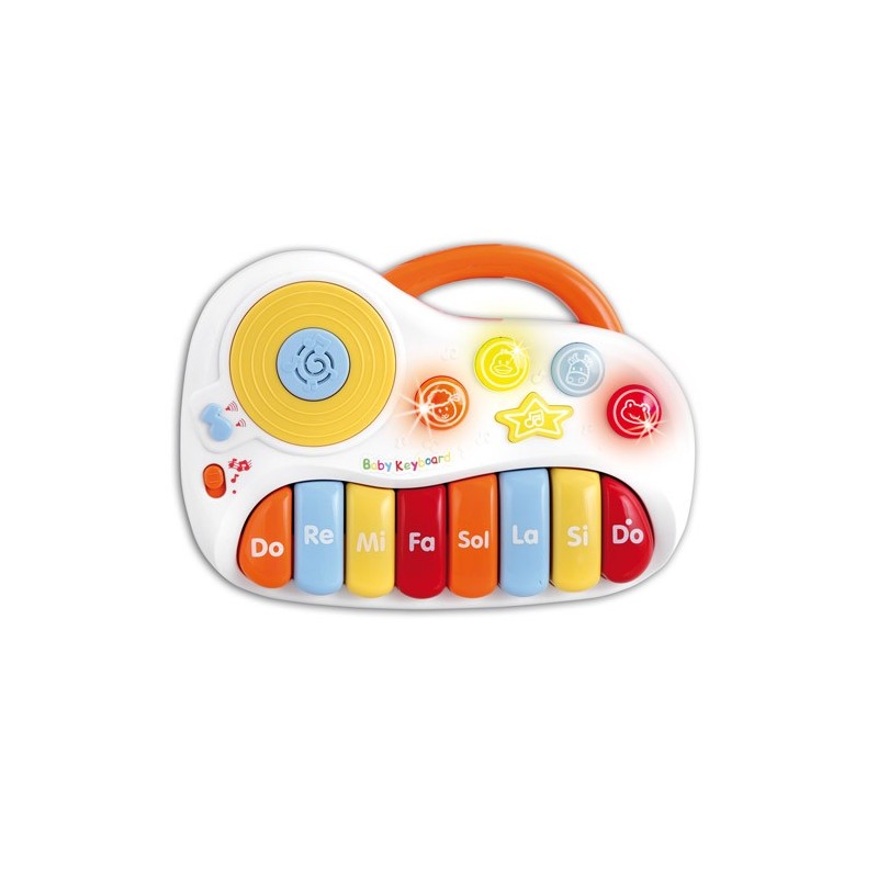 - Pianul este dotat cu efecte luminoase si sonore cu sunete de animale si 10 melodii inregistrate.