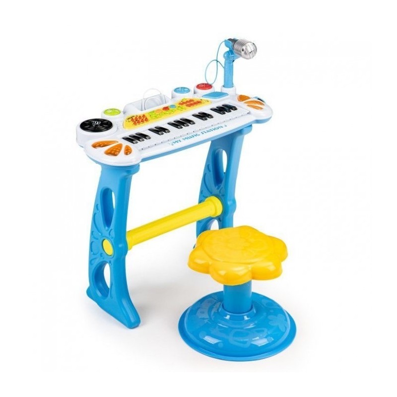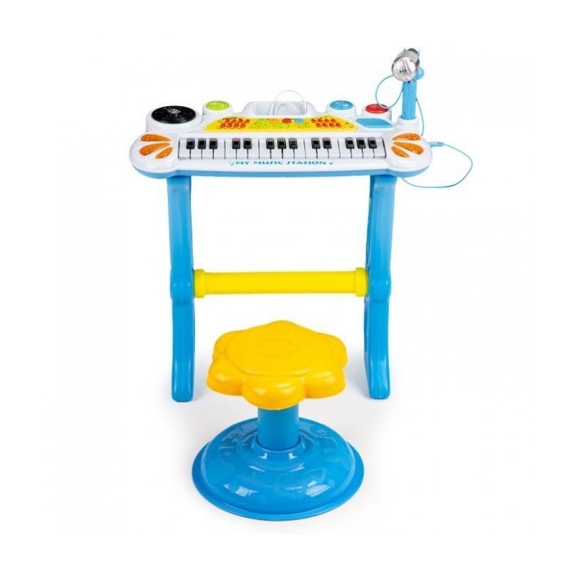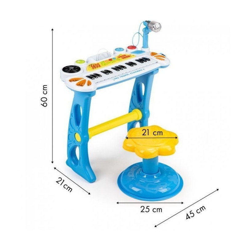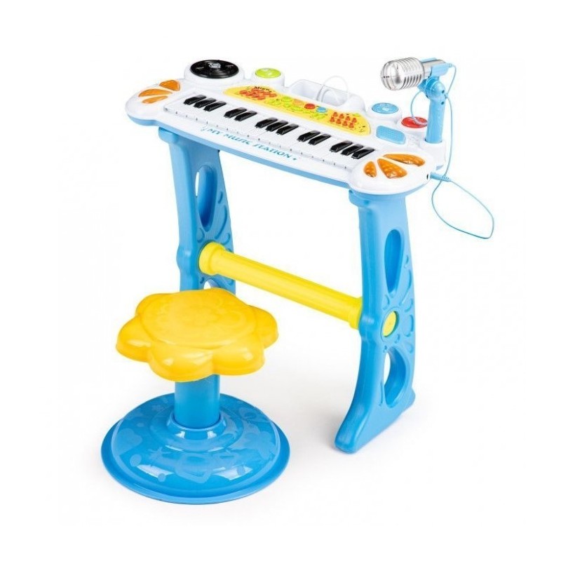 Datorita acestei jucarii, copilul tau va avea ocazia sa se mute in lumea melodiilor, sunetelor si sa compuna propriile melodii. Pianul arata ca un instrument adevarat, setul include un taburet, datorita caruia micul tau artist va putea sta confortabil in fata clapetelor. Jucaria va deveni rapid favorita, iar camera de zi va gazdui deseori concerte grozave.
