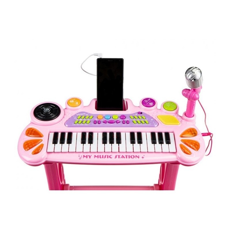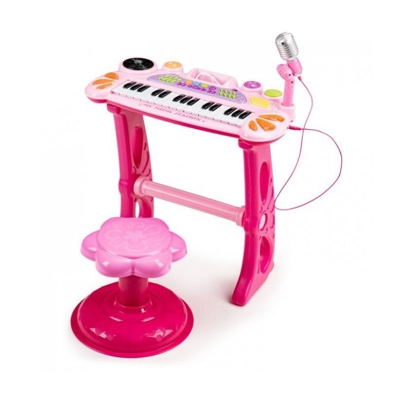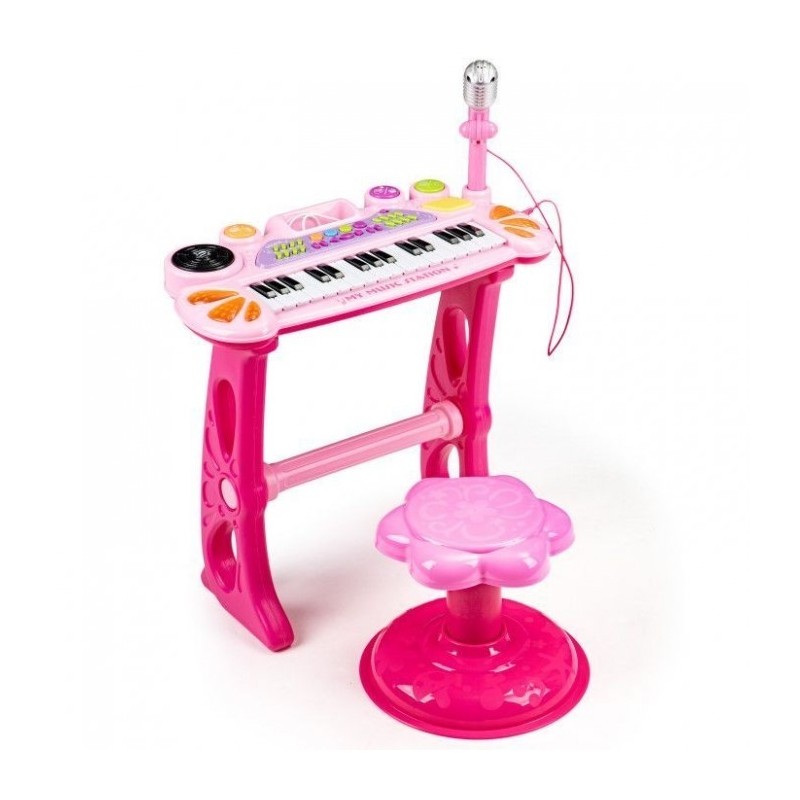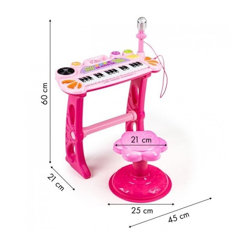 Datorita acestei jucarii, copilul tau va avea ocazia sa se mute in lumea melodiilor, sunetelor si sa compuna propriile melodii. Pianul arata ca un instrument adevarat, setul include un taburet, datorita caruia micul tau artist va putea sta confortabil in fata clapetelor. Jucaria va deveni rapid favorita, iar camera de zi va gazdui deseori concerte grozave.
