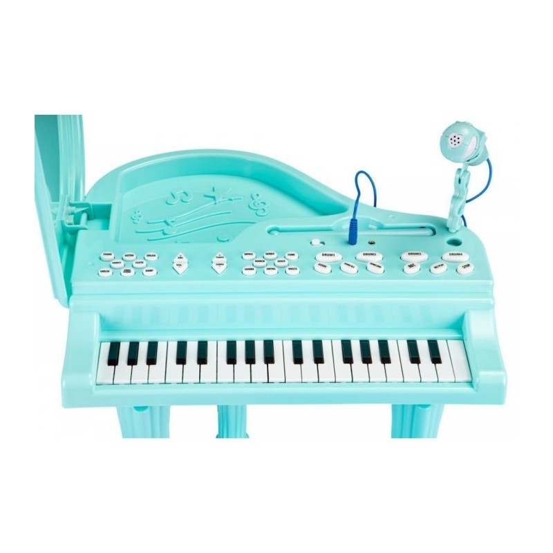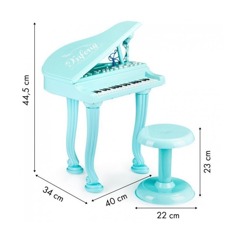 Datorita acestei jucarii, copilul tau va avea ocazia sa se mute in lumea melodiilor, sunetelor si sa compuna propriile melodii. Pianul arata ca un instrument adevarat, setul include un taburet, datorita caruia micul tau artist va putea sta confortabil in fata clapetelor. Jucaria va deveni rapid favorita, iar camera de zi va gazdui deseori concerte grozave.