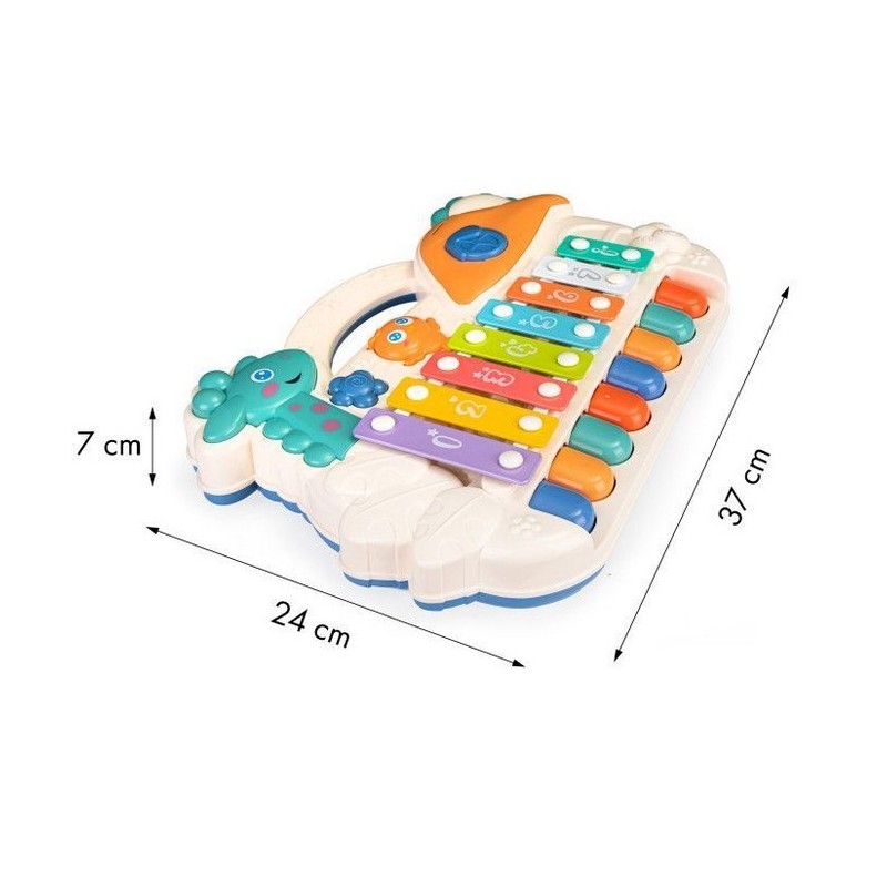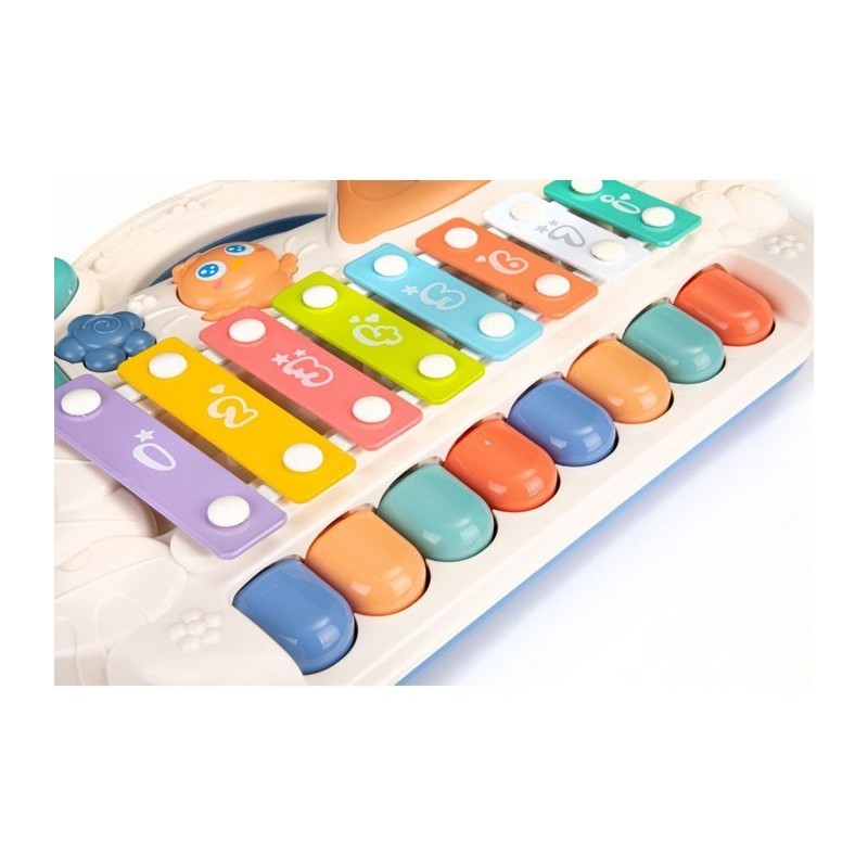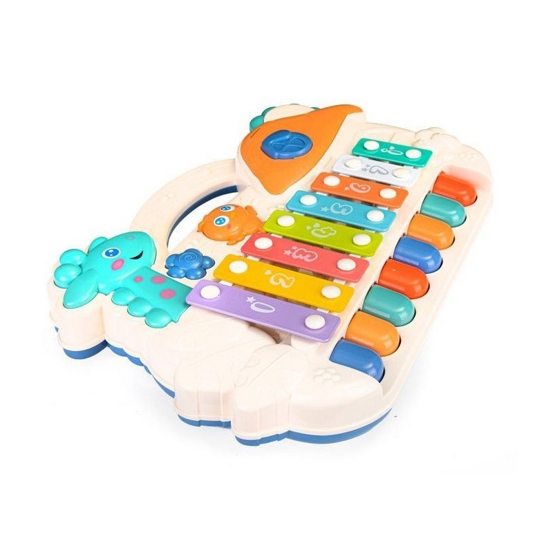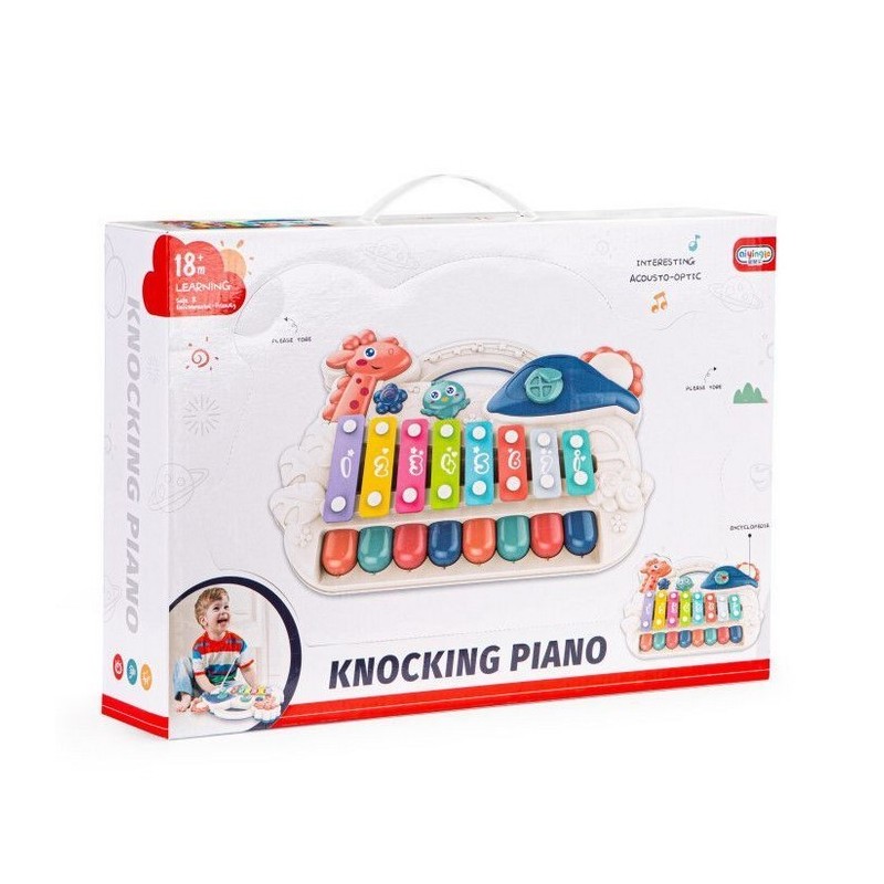 Jucaria muzicala Ecotoys 2 in 1, pian si tambal, are efecte de iluminare, functii pentru redarea melodiilor si a altor sunete. Setul contine 2 bete de jucat. Dezvolta abilitati manuale si motorii, destinate copiilor cu varsta peste 18 luni.