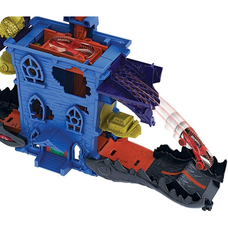 Detalii Pista de masini Hot Wheels by Mattel Croc Mansion Attack cu masinuta