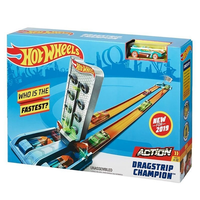 Detalii Pista de masini Hot Wheels by Mattel Action Dragstrip Champion cu masinuta