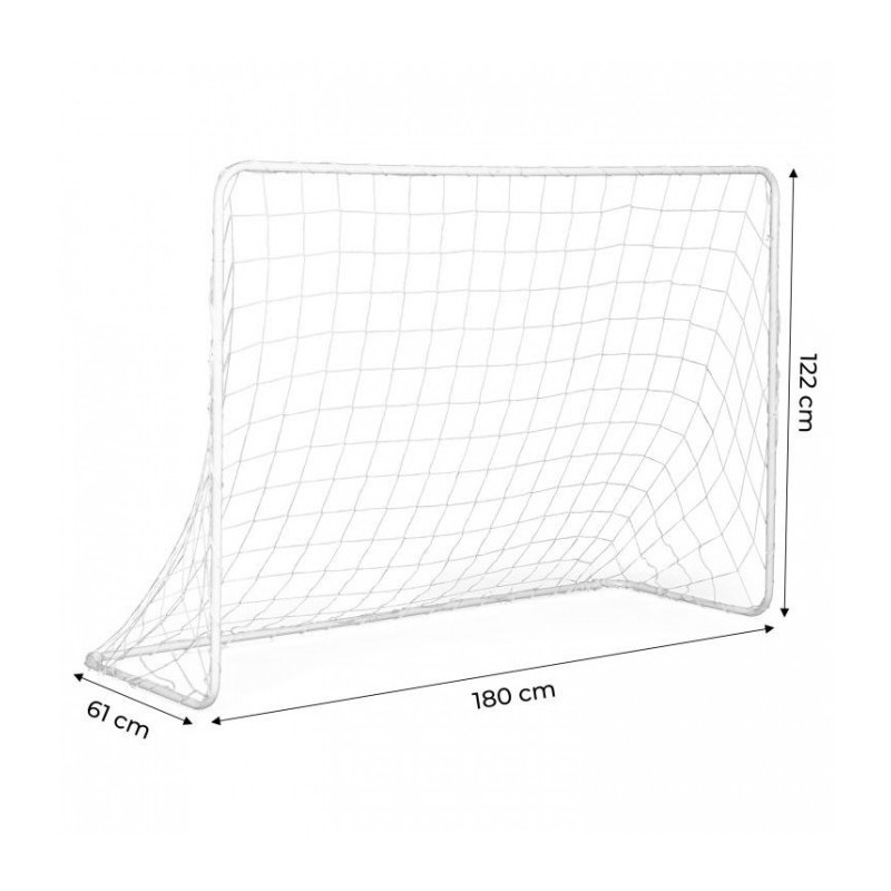 Poarta este realizata din tevi puternice de otel conectate cu zavoare. Plasa este atasata de rama portii cu sforile incluse in set. Pentru a imbunatatii stabilitatea portii, atasati-o la sol cu suruburile metalice incluse. O poarta mare de fotbal cu dimensiuni de 180 x 61 x 122 cm va fi perfecta pentru gradina dvs.
