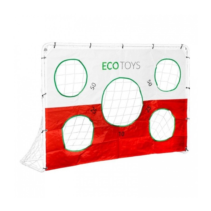 Poarta este realizata din tevi puternice de otel conectate cu zavoare. Plasa este atasata de rama portii cu sforile incluse in set. Covorasul/Prelata este atasata cu benzi elastice speciale pe care le poti indeparta oricand. Pentru a imbunatatii stabilitatea portii, atasati-o la sol cu suruburile metalice incluse. O poarta mare de fotbal cu dimensiuni de 180 x 61 x 122 cm va fi perfecta pentru gradina dvs.