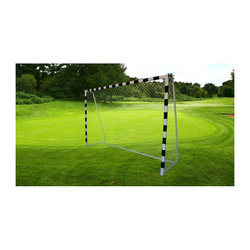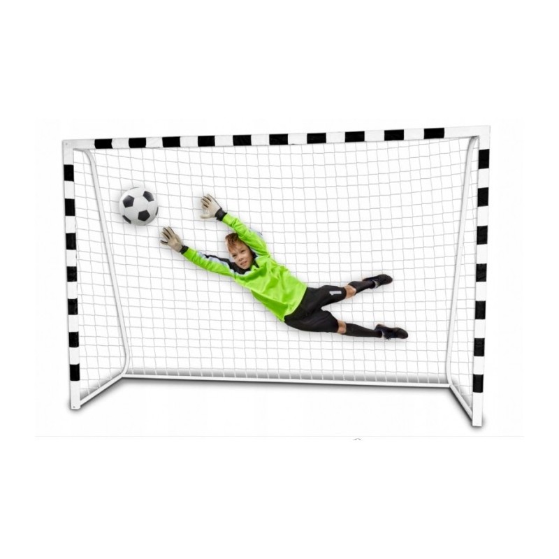 Structura este realizata din profile metalice solide, a caror asamblare este rapida si fara scule. Poarta trebuie atasata la sol pentru a putea fi folosita. Setul include stifturi (carlige de montare). Plasa este realizata din poliester rezistent.